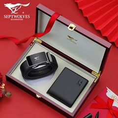 Septwolves ví thắt lưng bộ nam da mỏng ví ngắn cha nam triều thương hiệu quà tặng túi da hộp quà ví đựng thẻ nam ví da cá sấu 2 mặt